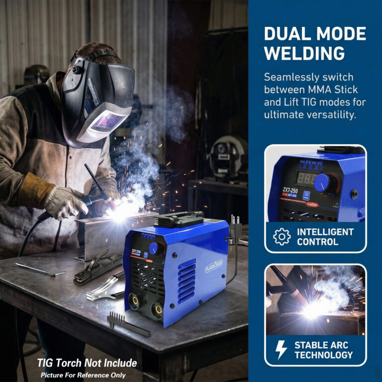 ZX7-250 focuses on portability and accessible welding performance, making it a strong fit for buyers who need a simple machine for repair and utility work. Current listed specs: 20-250Amp, 110V/220V, 60% duty cycle, 1.85 kg body.